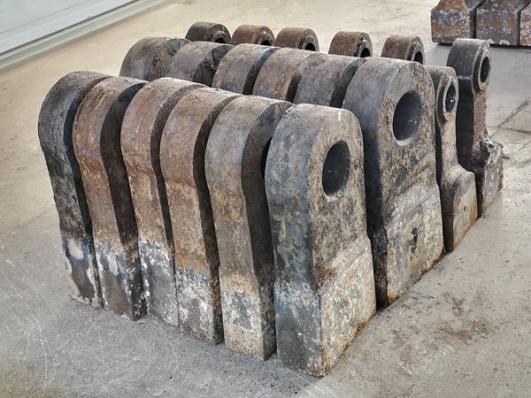 5、根據(jù)工況條件特殊配料,根據(jù)客戶來圖來樣定做各類異形破碎機(jī)錘頭;