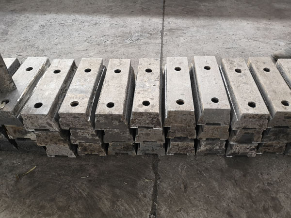 我公司生產(chǎn)的高鉻耐磨板錘主要合金元素為鉻,為了提高淬透性加入了鎳、鉬等合金元素。高鉻鑄鐵合金化程度較高,制作反擊破板錘具有較高的淬透性、淬硬性和耐磨性,還有較好的抗氧化和抗熱疲勞能力。